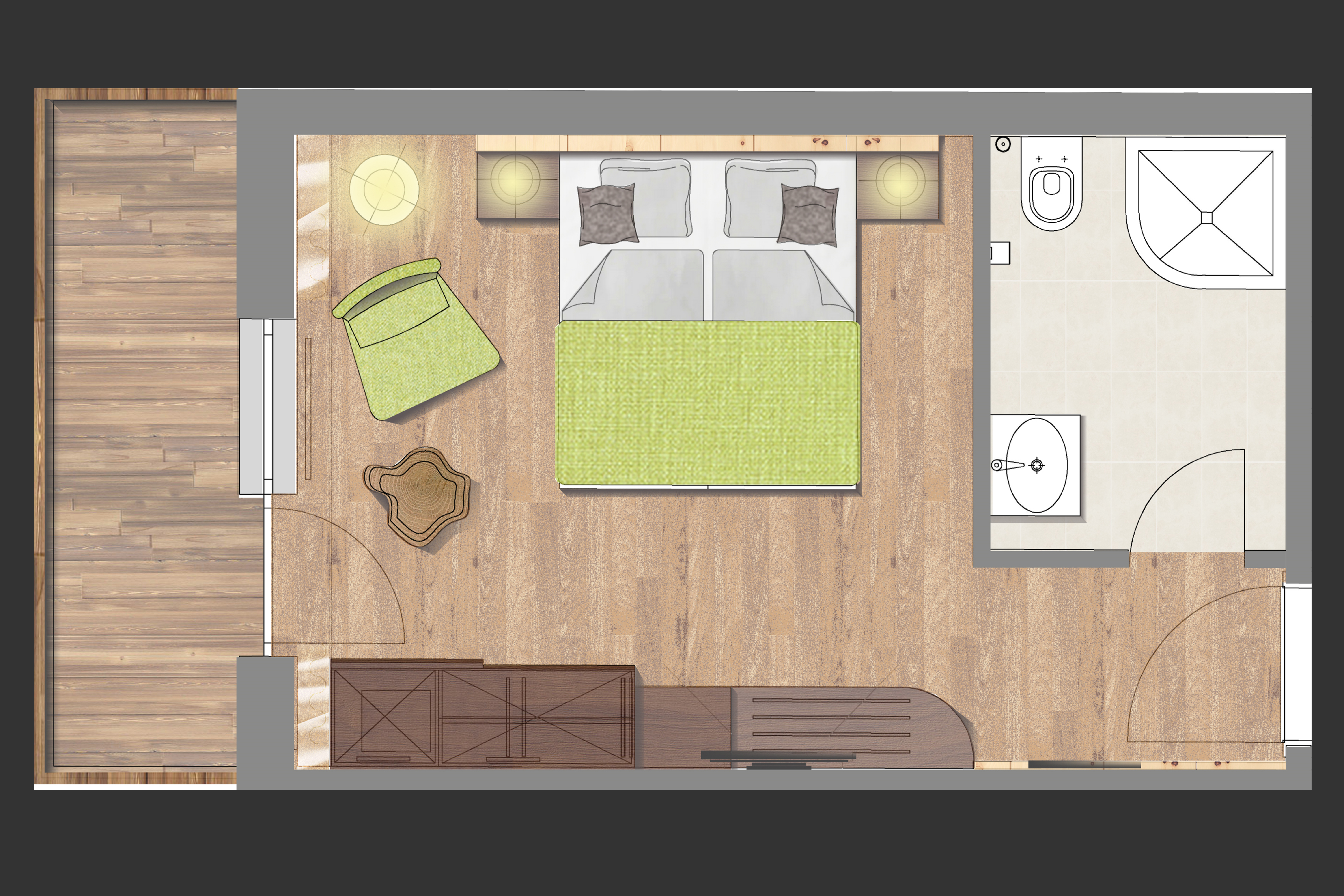 Dieses Zimmer gibt es in zwei verschiedenen Designs. Eines davon mit Teppichboden und eines ohne.
